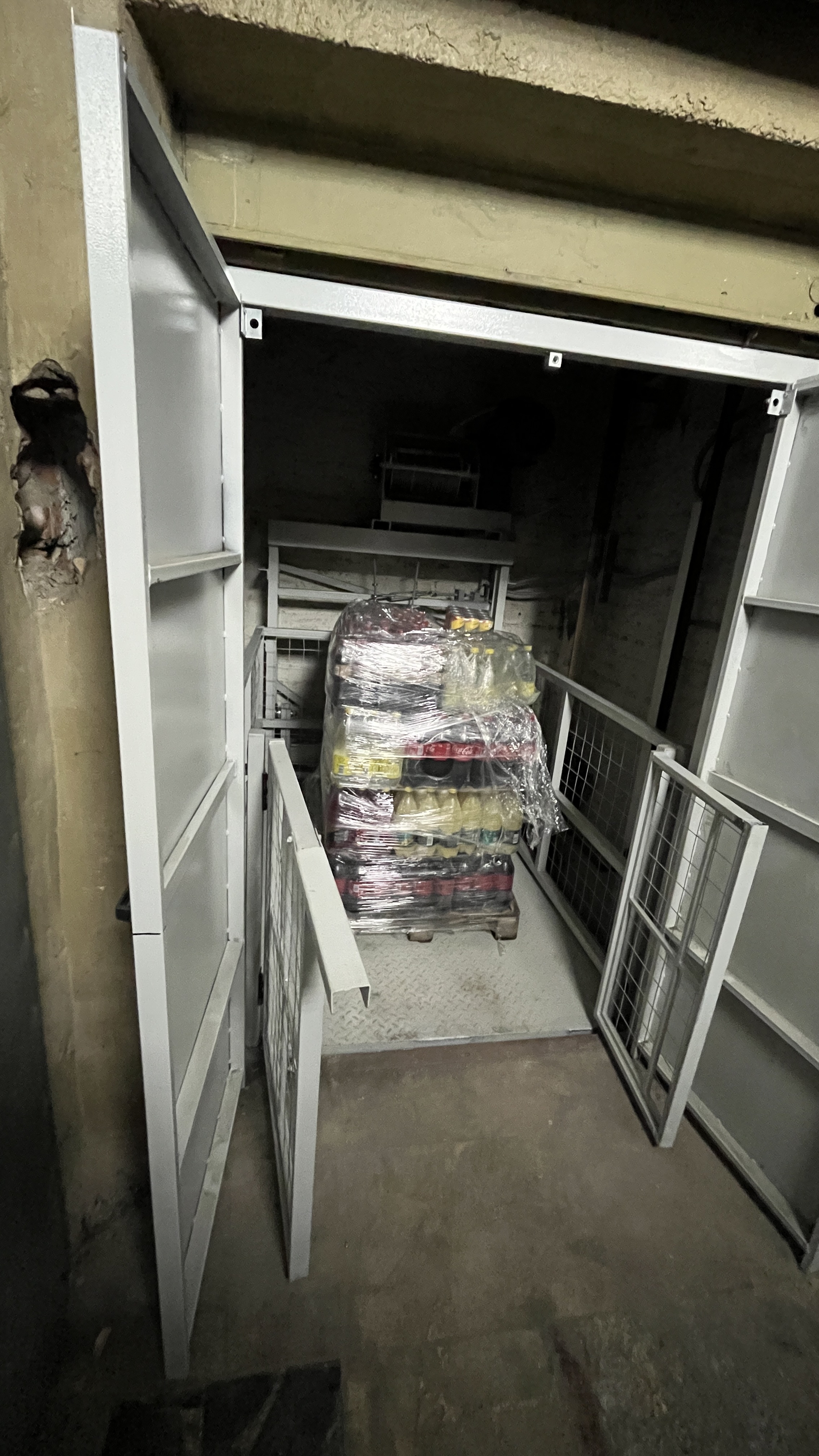 Нашей компанией установлен мачтовый грузовой электрический подъемник в существующую шахту здания. Подъемник позволяет перемещать груз весом до 1,5т на высоту 9м. В подъемнике предусмотрены следующие системы безопасности: блокировка дверей шахты с концевыми выключателями положения створок, ограждение площадки, ограничитель грузоподъемности, ловитель мгновенного действия, аварийные концевики крайних остановок, аварийная кнопка стоп на каждой остановке.